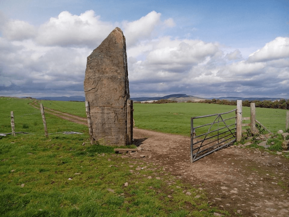 I pictured the bronze-age people in skins, sackcloth and rags, holding up torches of flame, dragging this enormous jagged, 4.3 meter sandstone, heaving it with ropes and levering it into the ground. Stonehenge-type people with devotion to their land, their sacred stones and their dead. He told us of the functions of megaliths like this – meeting places, markers, places of ritual and secret ceremonies.