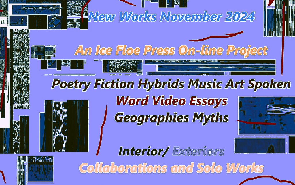 October 31, 2024robertfredekenter NEW WORKS NOVEMBER 2024 LAUNCHES NOVEMBER 1, 2024 STARTING NOV 1, 2024 AN ICE FLOE PRESS SERIES curated by robert frede kenter and moira j. saucer Share this: Click to share on X (Opens in new window) X Click to share on Facebook (Opens in new window) Facebook Like Loading... Related