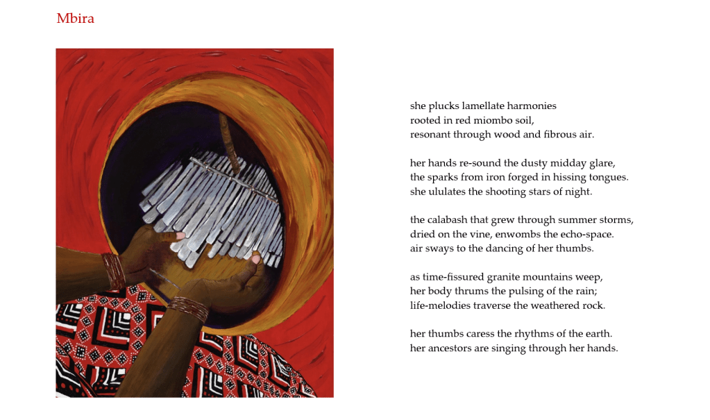 Mbira – a Collaboration: Marian Christie (Poem), Samantha Rumbidzai Vazhure (Painting), Quinten Vazhure (Music)